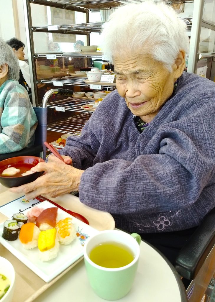 厨房の調理師さんが利用者様の前で実演をしてくださり